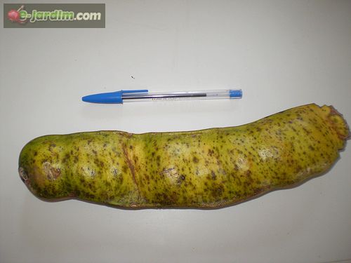 Enormes vagens semi-cilíndricas de 20-30 cm de comprimento e 8-10 cm de largura, dotadas de fina casca verde-amarelada e abundante polpa branca, doce e suculenta. A árvore possui copa ovoide mais ou menos densa, e destaca-se pela bela tonalidade da folhagem jovem, marrom-acobreada. Atinge 8-10 m em pomares domésticos.