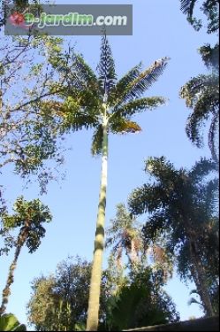 Palmeira solitária, alta e graciosa, de caule liso e palmito muito vistoso. Folhas pinadas, de tonalidade verde-profunda em ambas as faces, formando uma copa arredondada. Frutos esféricos, medindo cerca de 1 cm, de coloração que varia do vermelho ao enegrecido.