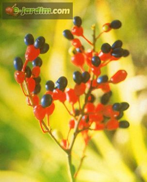 Lindo arbusto de 1-2 m, de inflorescência terminal, com numerosas flores amarelo-ouro dispostas em panículas (cachos de cachos) e folhas alternas, de margem serrulada e verso marrom-dourado. O receptáculo floral é intensamente vermelho, com dois frutos azul-esverdeados de tonalidade metálica aderidos ao mesmo, emprestando ao conjunto uma forte semelhança com o personagem Mickey Mouse de Walt Disney (segunda foto).