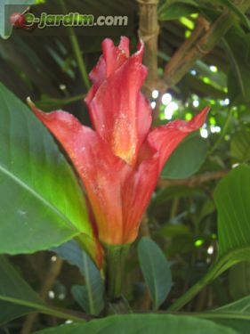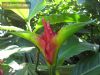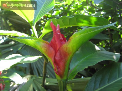 Belo arbusto semi-lenhoso, de folhas e flores grandes, com brácteas muito vistosas, intensamente vermelhas (ver fotos).