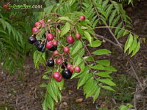 Pequena árvore de 3 a 4 m de altura, com folhas pinadas formadas por 10 a 20 folíolos. Suas flores, pequenas e de cor creme, são terminais e dão origem a pequenos frutos rosados que se tornam negros na maturação completa.