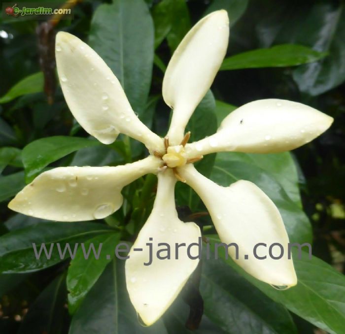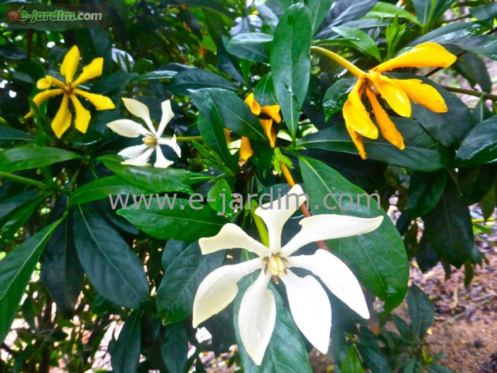Arvoreta de 1,5-2 m de altura, muito ramificada desde a base, com folhas verdes brilhantes, de nervuras impressas, com base estreita e ápice obtuso. As flores são muito vistosas e grandes, passando de brancas a dourado-intenso, sempre eretas e nunca pendentes (característica que distingue G. gjellerupii de G. tubifera); são também muito perfumadas, principalmente no final da tarde e à noite. A floração se dá de forma quase ininterrupta, durante a maior parte do ano.