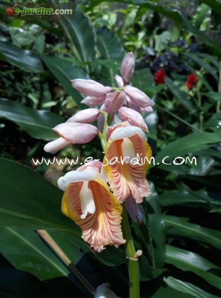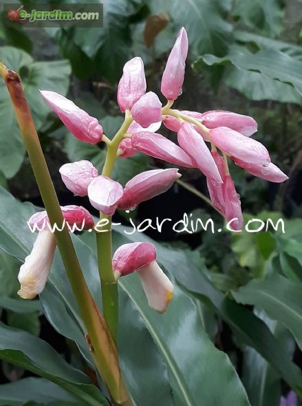 Gengibre entouceirado, de porte pequeno a médio (1-1,5 m altura), de folhagem discolor verde-escura brilhante na face superior, mais clara e fosca na inferior, com a lâmina foliar bem estreita e alongada. As folhas quando amassadas são muito aromáticas. A inflorescência é muito atraente, de uma linda tonalidade róseo-arroxeada, que logo a diferencia de outras espécies de Alpinia.